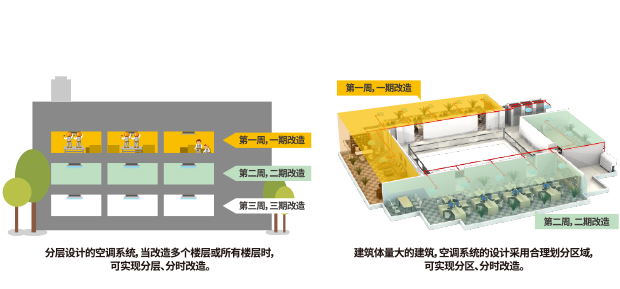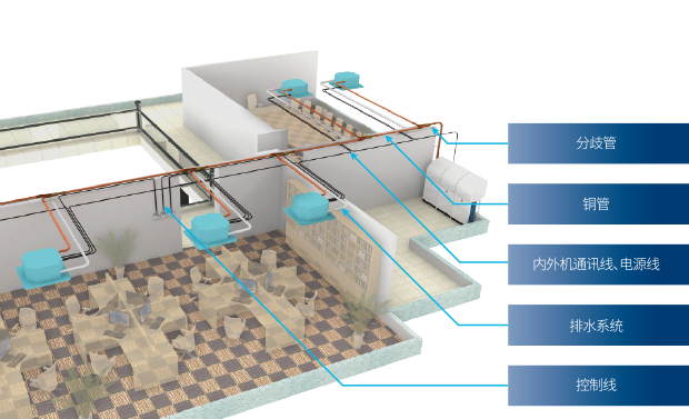 Renewal更新機靈活便利的配管技術,不僅能輕松應對目前的布局條件,即使需要調整現有空間布局設計而改變空調系統,也可應對自如。