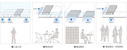 根據房屋建筑結構和室內裝修的不同,用戶可選擇或者由設計方推薦不同風管機,一方面配合室內裝修效果;另一方面,結合送回風方式的不同,最大程度上滿足客戶不同的個性化需求!