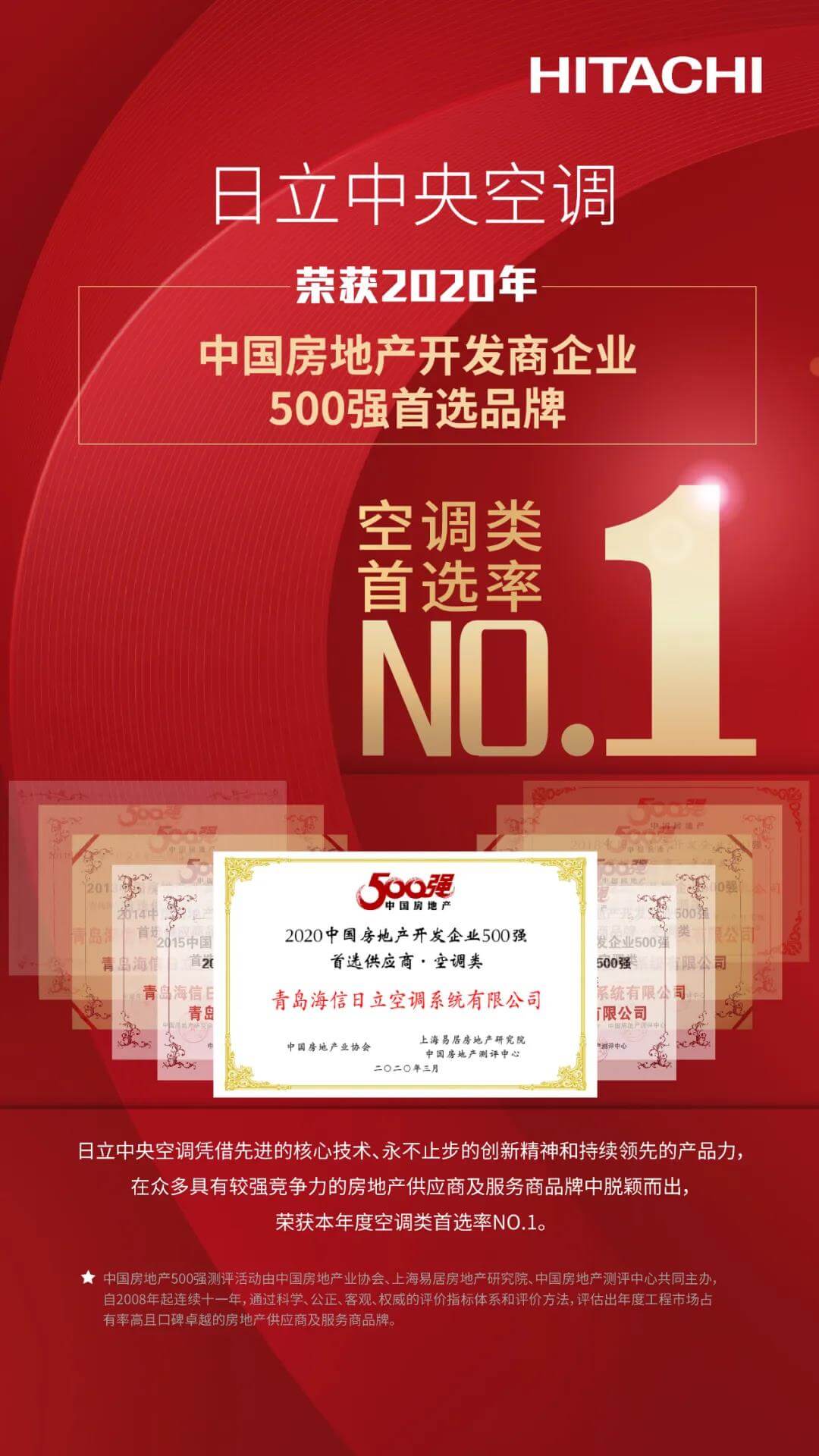 2019年3月,海信日立再度榮獲了萬科集團材料設備類A級供應商稱號。這也標志著日立中央空調成為空調類唯一連續五屆蟬聯該榮譽的中央空調品牌。