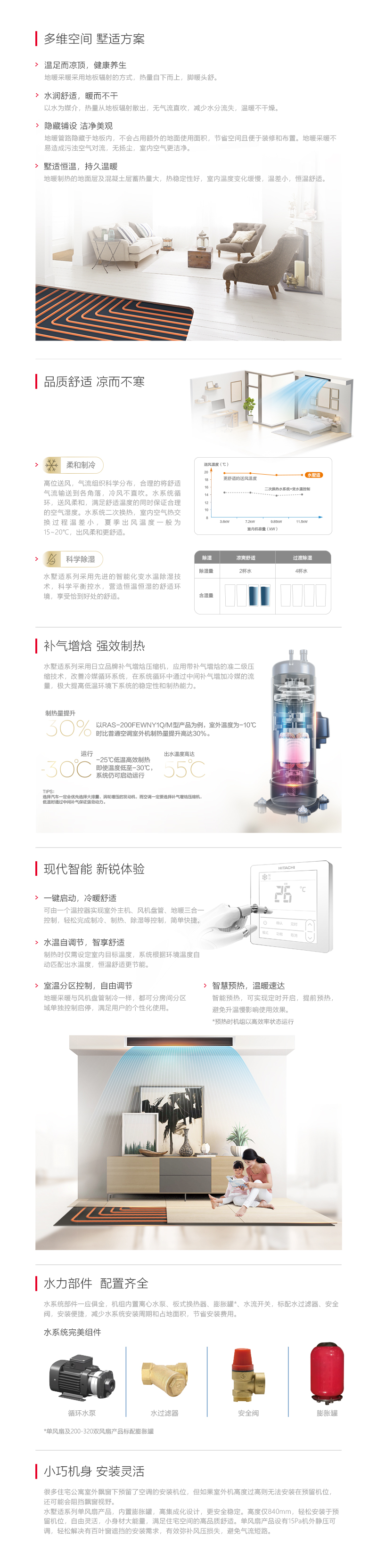 制冷、制熱、除濕、送風、地暖、制熱+地暖多種模式可調