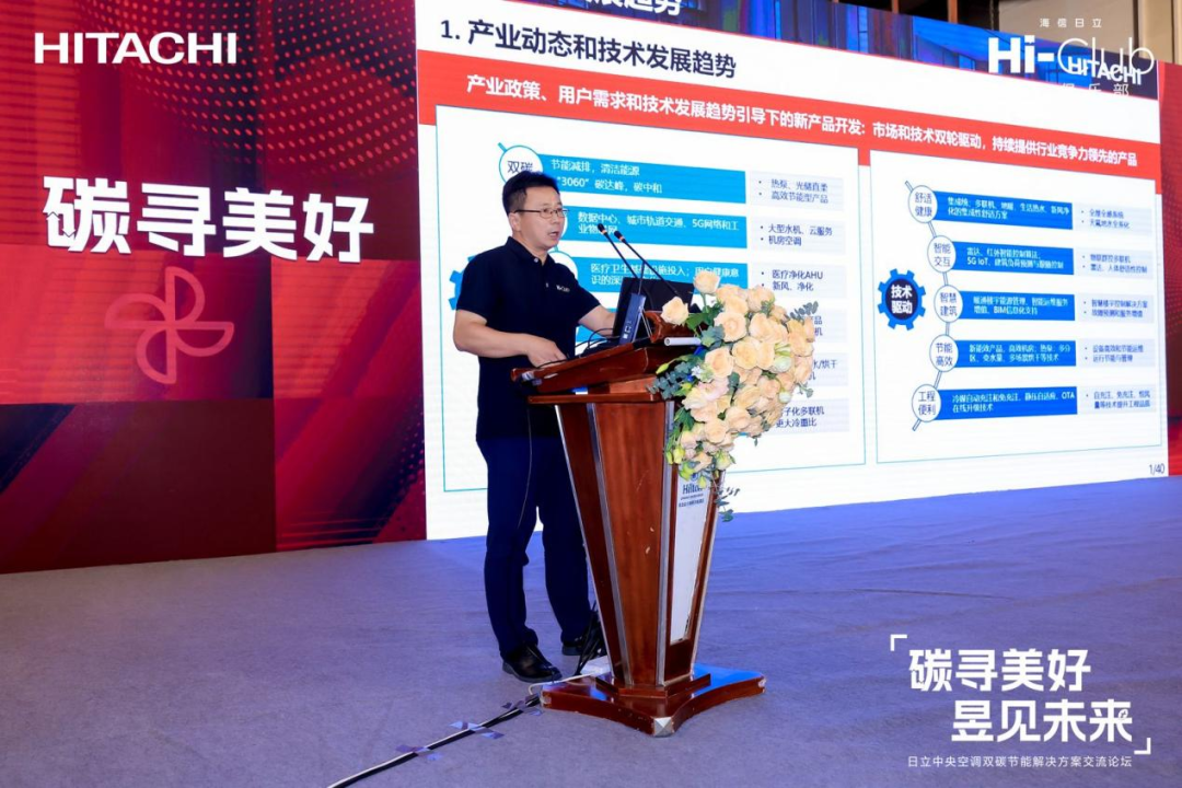 “雙碳”背景之下,將綠色技術與產業場景、需求深度融合應用,不斷書寫暖通行業從技術研發到生產制造、以及實踐應用等方面的全新表達,無疑已成行業重要命題。日立中央空調客戶支持部副總經理鄧玉平以《雙碳技術研發與先進制造》為題,系統分享了日立在低碳節能領域的全方位布局實踐。他表示,日立在產業政策、用戶需求和技術發展趨勢引導下構建新產品開發,以市場和技術雙輪驅動,持續提供具有行業競爭力的產品。
