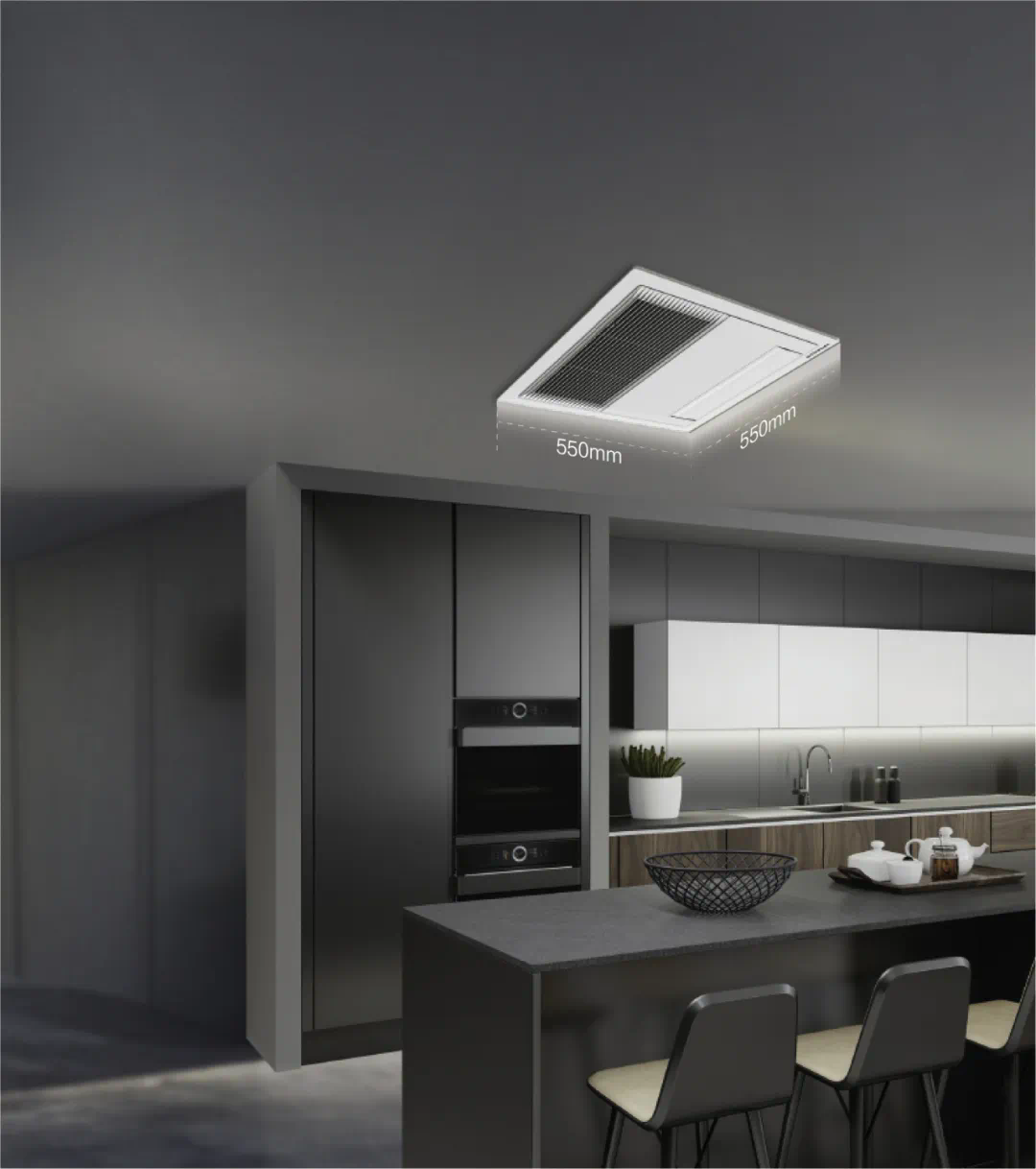 隱藏式安裝,550mm×550mm 緊湊設(shè)計,靈活便捷。產(chǎn)品面板外形設(shè)計美觀,與室內(nèi)裝飾融為一體,不影響房間整體設(shè)計風(fēng)格,和諧更美觀。