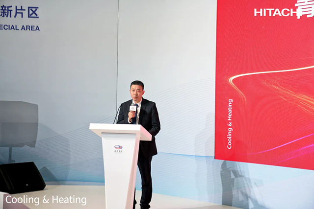 海信日立營銷公司總經理助理 劉新義在致辭中表示,既有建筑的設備和系統改造是一項系統性復雜工程,日立中央空調致力從全生命周期角度護航、從細節出發,以全方位綜合解決方案確保建筑更新改造高效實現。