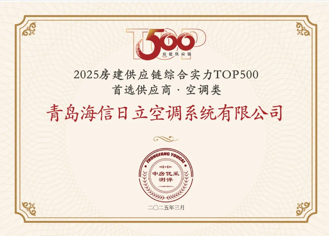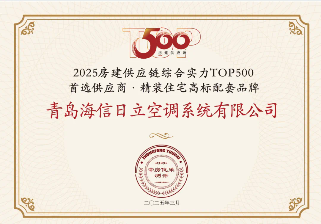 在本次評選中,日立中央空調憑借卓越的產品實力、完善的服務體系以及強大的品牌影響力,再次斬獲空調類 2025房建供應鏈綜合實力TOP500首選供應商及精裝住宅高標配套品牌 2025房建供應鏈綜合實力TOP500首選供應商雙項殊榮,充分彰顯了其在行業中的絕對領先地位和廣泛的市場認可度。