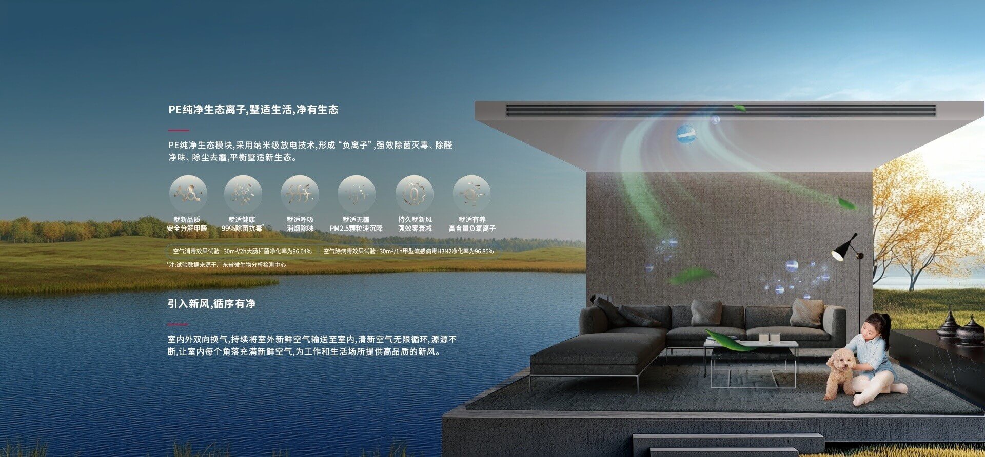 全屋全感能夠為不便通風的室內環境通風換氣, 實時排濁增氧,打造足不出戶的富氧“呼吸”。